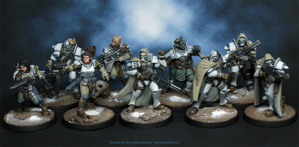 The always asked for scale comparison: Warzone 2nd edition plastic Trencher, Prodos Capitol trooper, Mödiphius Legionnaire and the new Warzone Eternal Hatamoto.
