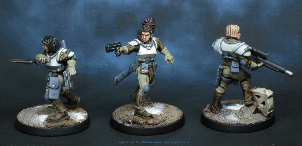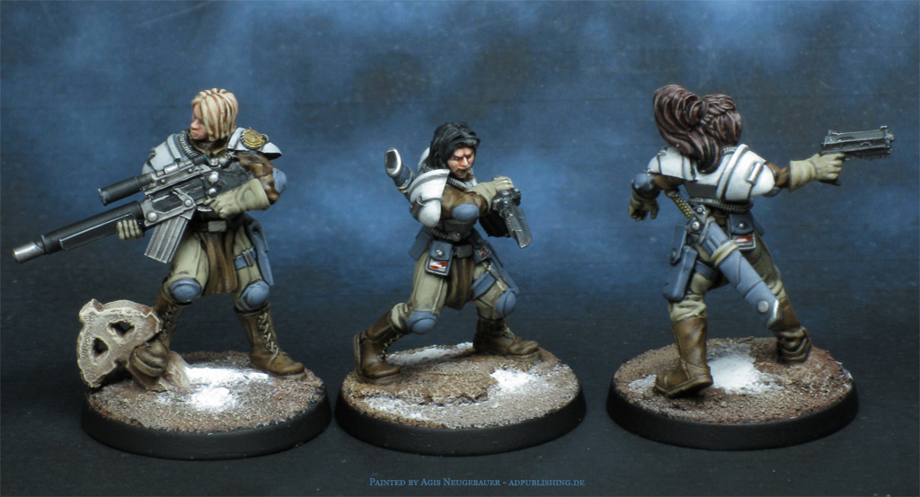 The all-new Bauhaus Étoiles Mortant. The sniper is a minor conversion; it originally came with a bearded male head, which I immediately disliked. Time for a head swap. What made it easier was that the body was more or less gender-neutral.