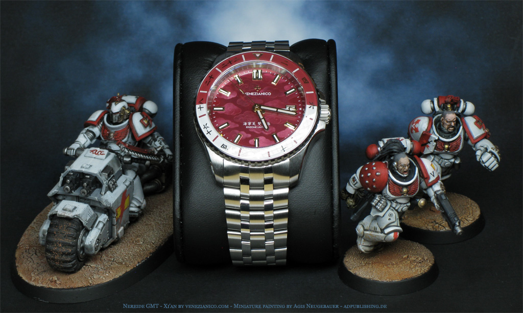 For me, the connection is personal. I have been painting miniatures since the 1980s, and the White Scars are one of my current projects precisely because of their rich background and distinctive aesthetic. At the same time, I have long appreciated well-made mechanical watches with thoughtful, distinctive design. The Nereide felt like a natural fit — not only in colour and theme, but in spirit.
