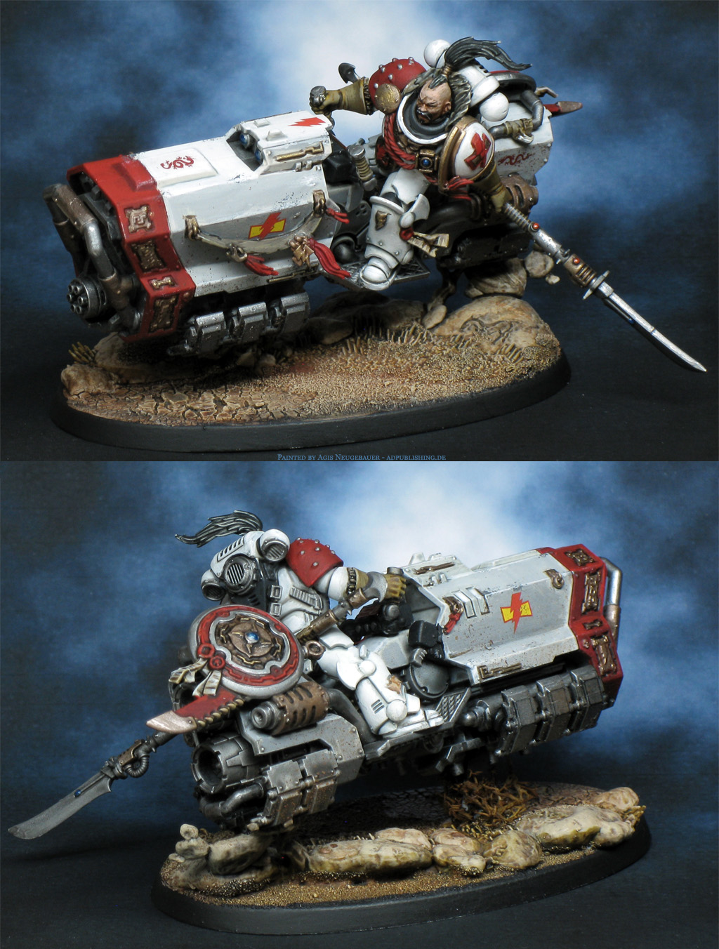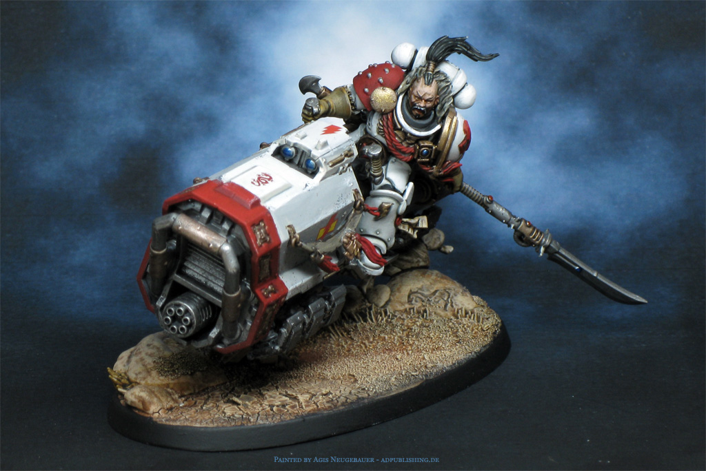 Warhammer 40,000 is a dystopian science-fiction universe set in the far future, where genetically enhanced super-soldiers known as Space Marines wage endless war across the galaxy. Among these warrior brotherhoods are the White Scars, a Chapter inspired by the steppe cultures of Central Asia. Masters of speed and mobility, they favour lightning assaults and decisive strikes. Shaped by their Primarch, Jaghatai Khan, they embody freedom, momentum, and a warrior ethos rooted in the traditions of mounted nomads.